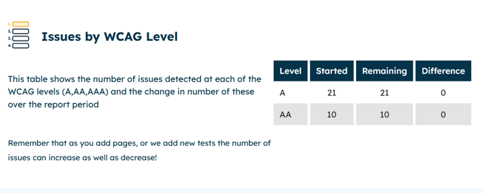Reporting now automatically reflects the configuration settings applied to your domain. Any Checks you’ve filtered out from your scan results will also be excluded from your reports, ensuring a cleaner, more relevant view. In addition, results are now aligned with your selected WCAG compliance level, showing only the data that matters to your accessibility goals.