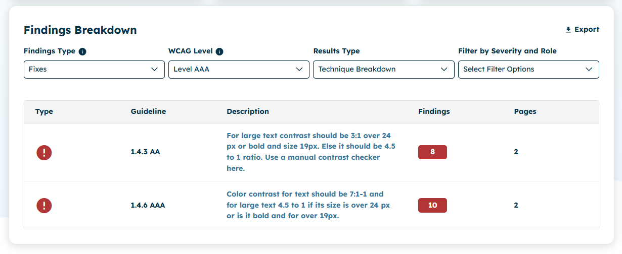 UI - Findings Breakdown