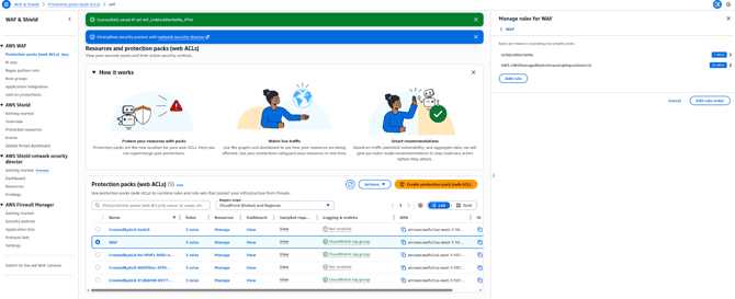 - Head over to your 'Protection packs (web ACLs)' section you can find the link in the left menu and select your protection pack.